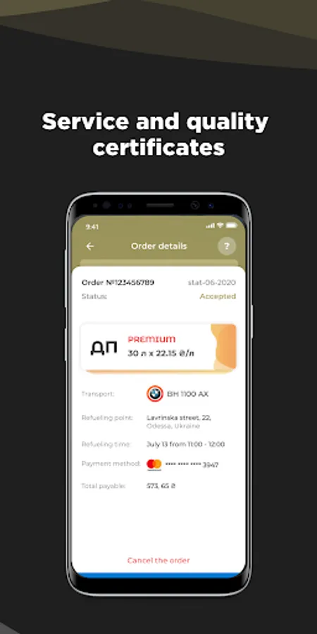 Wait for the status of the order to change When the specialist refuels the car, the status will be updated - “refueling completed”