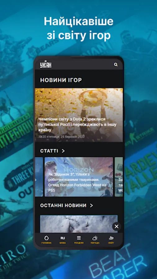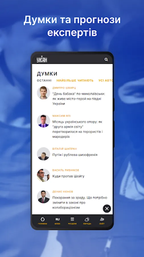 Only verified information, which is updated 24/7 from the largest agency in the country. Install the UNIAN application and get expert opinions, interviews with famous people and the latest exclusive news. Millions read us, join us! Be independent together with UNIAN!