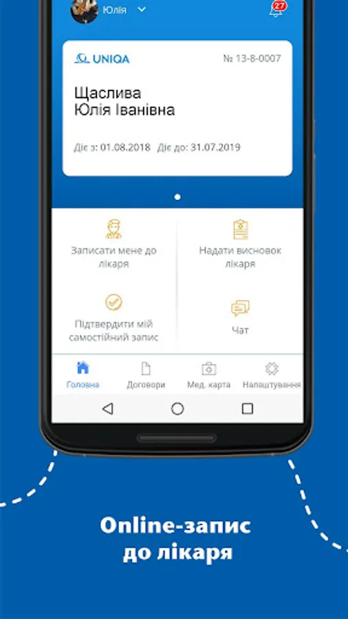 With Mobile application "myUNIQA" as UNIQA client with Health insurance you are able to: