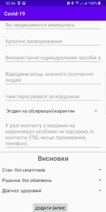 The app is intended solely for use by physicians, border guards, or other government officials. Public registration is unavailable.