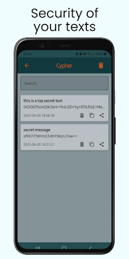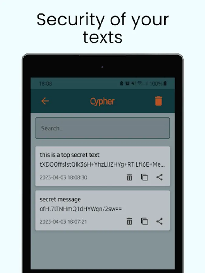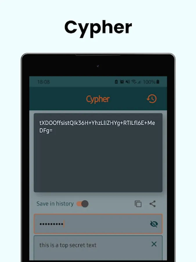 With Cypher you can encrypt any kind of text - from personal notes to emails, letters, long texts, etc.
