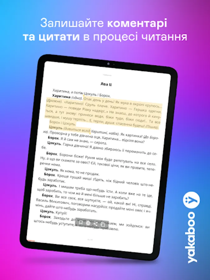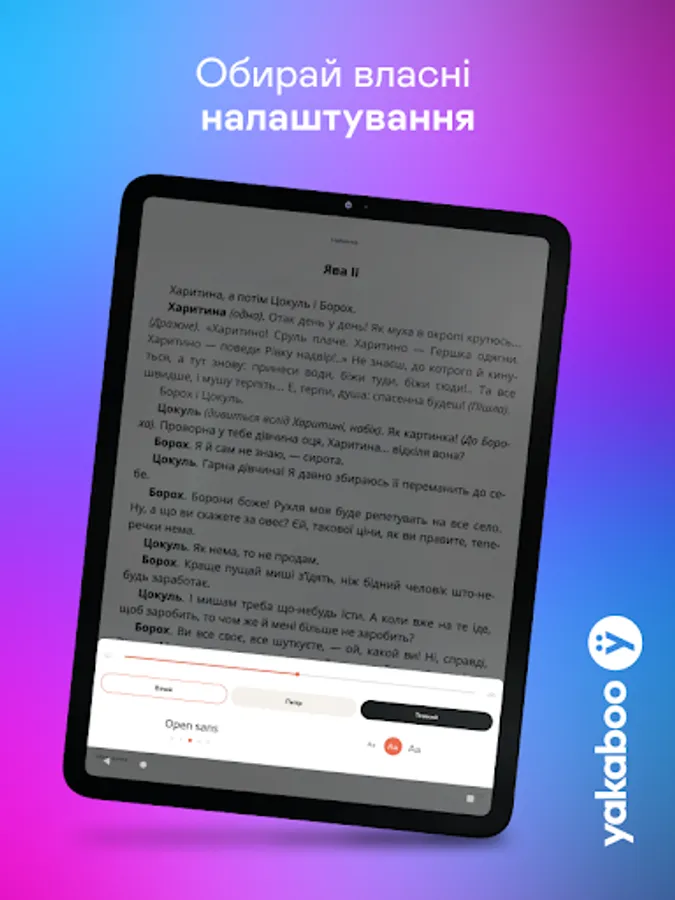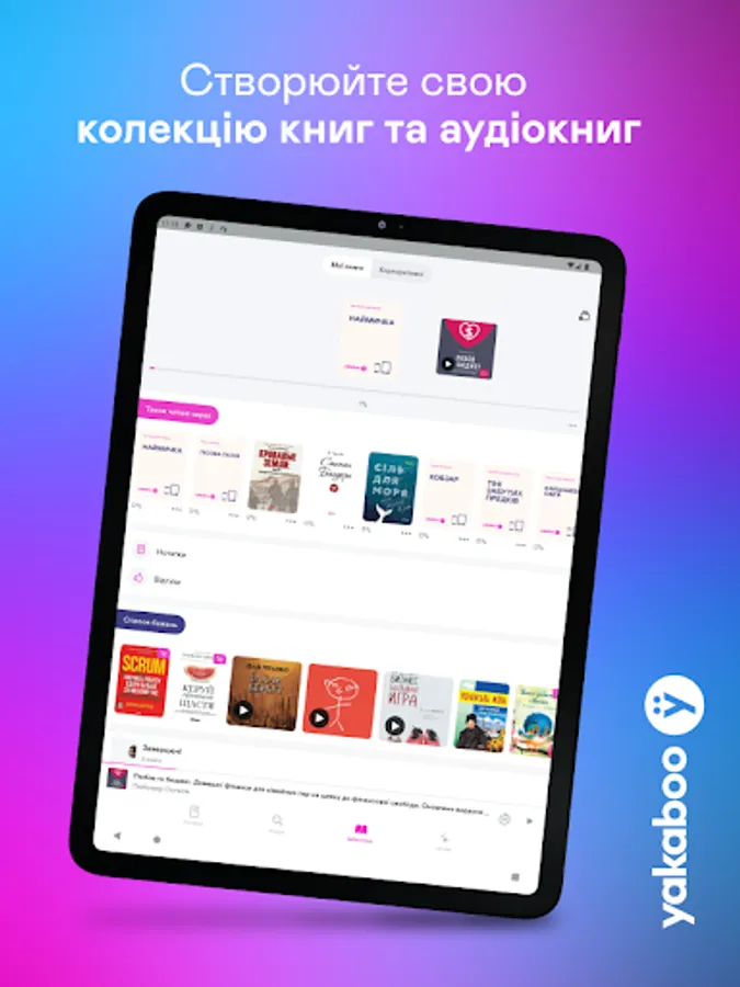 Read 📖and listen to your favorite books📕 📒 📙 anytime with the Yakaboo app, which can be downloaded online from Google Play. Yakaboo is the largest electronic library in Ukraine with more than 20,000 electronic and audiobooks from well-known Ukrainian and world authors. Download, read or listen to literature wherever you are - at home, in the office, abroad. This is a great alternative to a regular e-book, as a single device (smartphone or tablet) combines the function of a reader and other useful options: calls, camera, gallery, games and applications, and more.