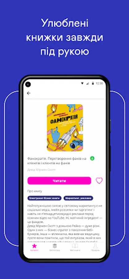 Choose genres for every taste: self-development, psychology, parenting, health, memoirs, detective stories, adventures, romance novels and much more. The appendix also presents children's electronic literature, including audio tales 📔, which the child will listen to with pleasure. Among the variety of publications, any user will be able to find an option to taste.