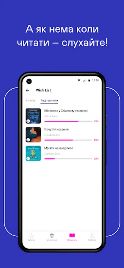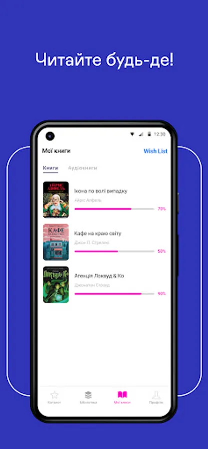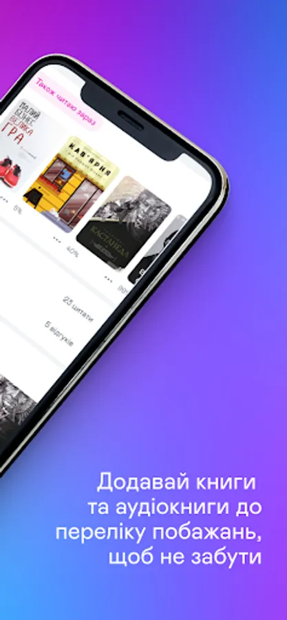 Each book is accompanied by a description with information about the publisher, number of pages, language of publication: Ukrainian or Russian. If you plan to buy the publication now or later, add it to your wish list, which is divided into two categories: books and audiobooks. In the section "Purchased books" collect your personal collection for reading, which you bought on the site Yakaboo.ua, or received for free.