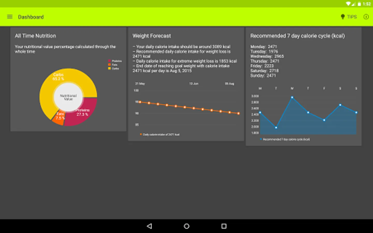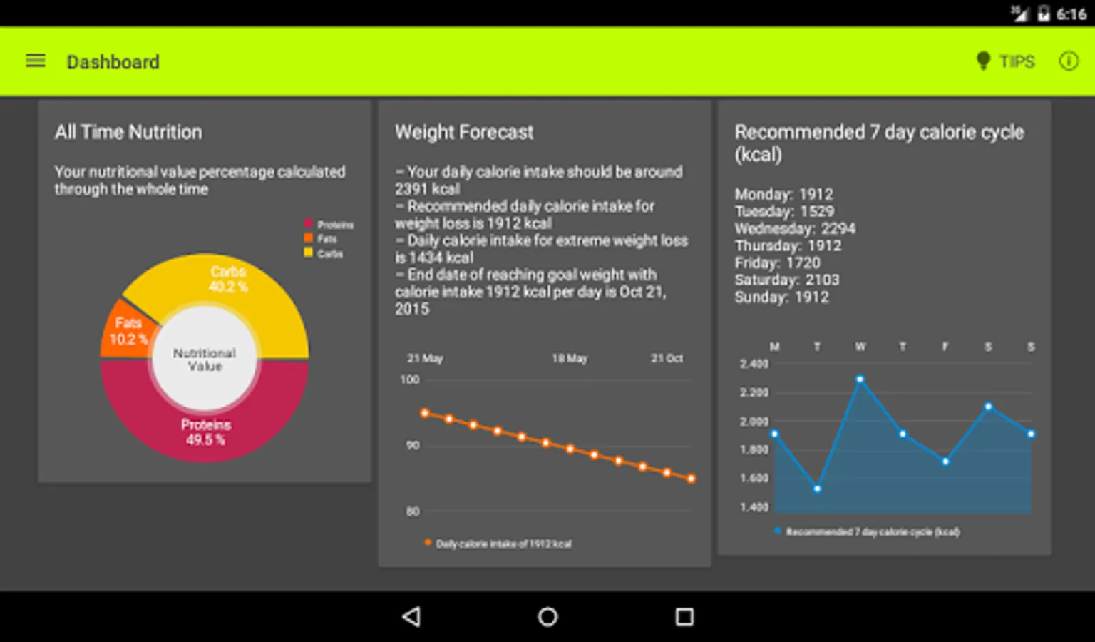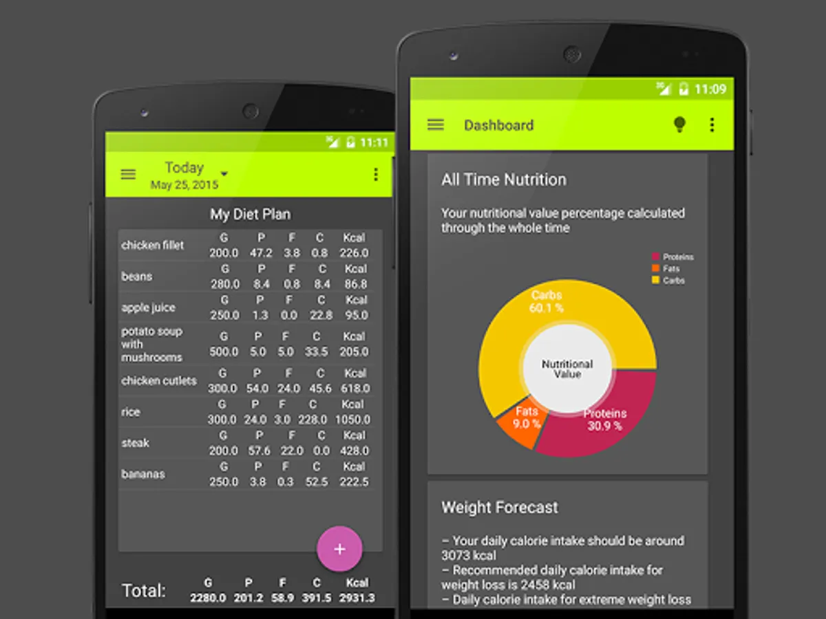 ✓ View of your nutrition status with recommendations and weight forecasts;