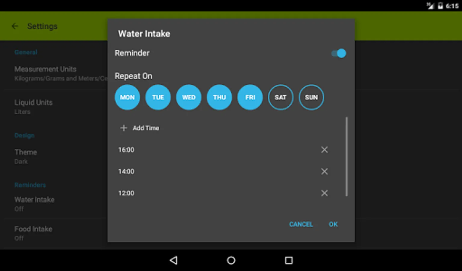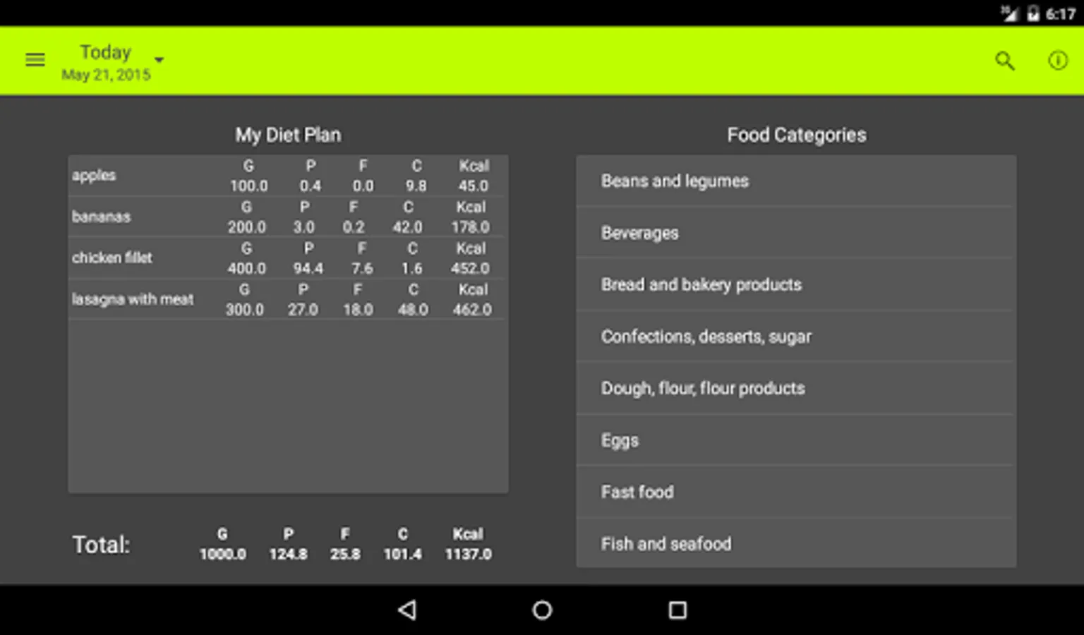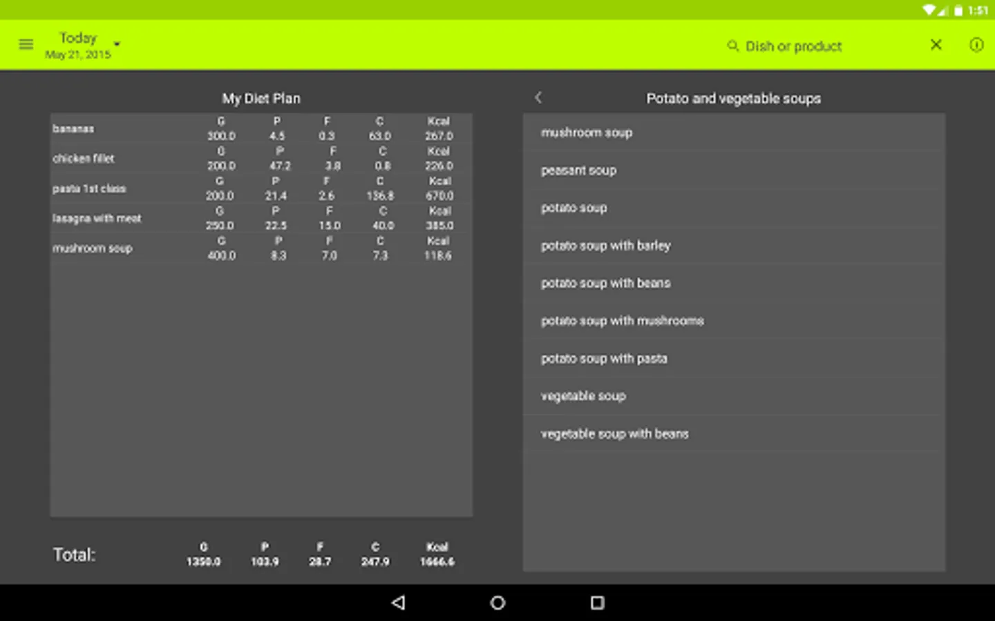 ✓ Possibility to add your own foods & dishes, categories and subcategories of foods;