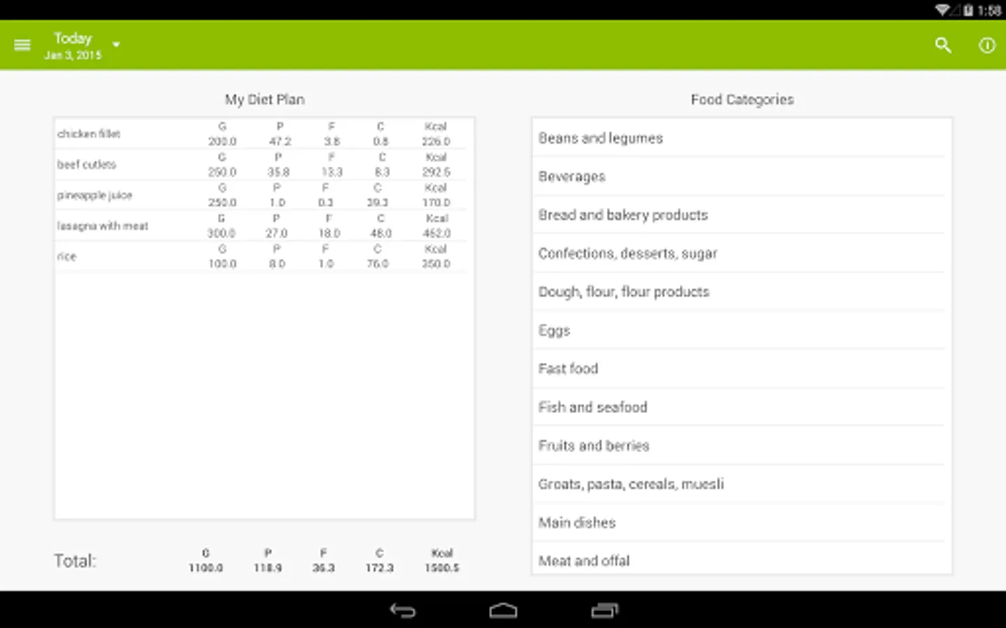 ✓ Possibility to add your own foods & dishes, categories and subcategories of foods;