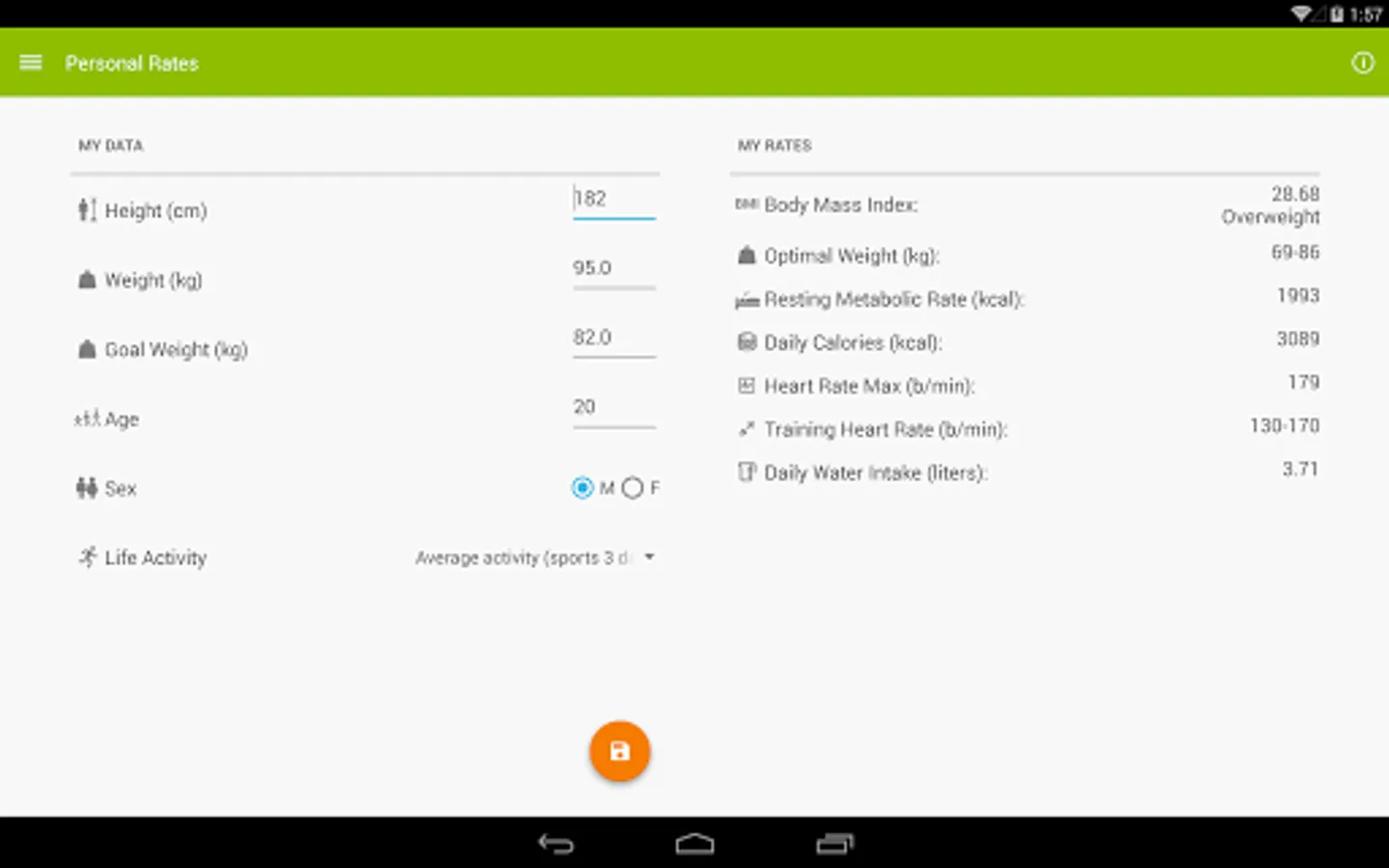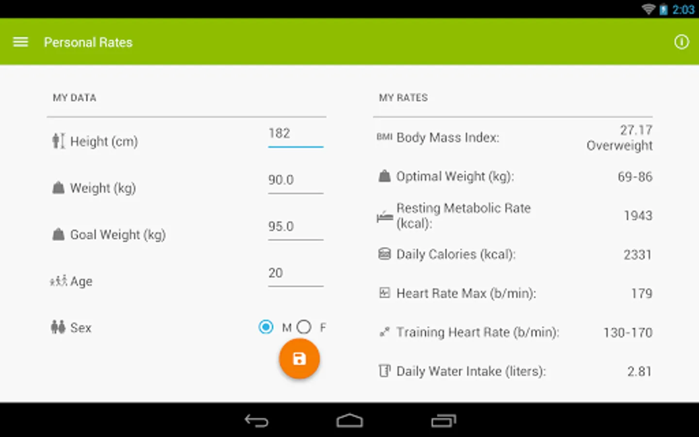 FitCalc is a second version of popular app - Fitness Calculator 1.0 (http://goo.gl/rVXWF0). It is a FREE offline fitness app that helps to optimize your body, health and nutrition.