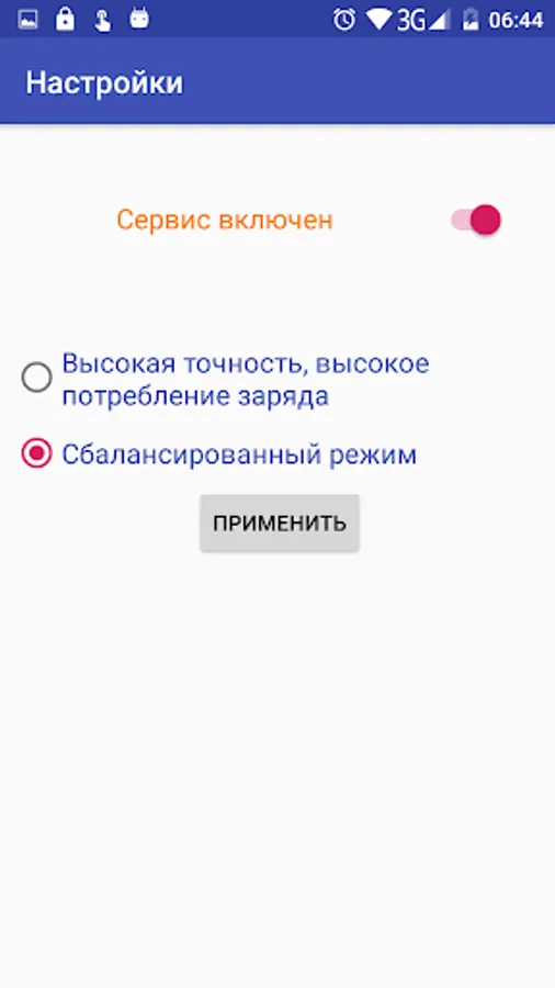 The user can select a high-precision positioning mode, while there is a high charge consumption or a balanced mode. By default, the application runs in balanced mode.