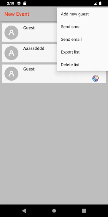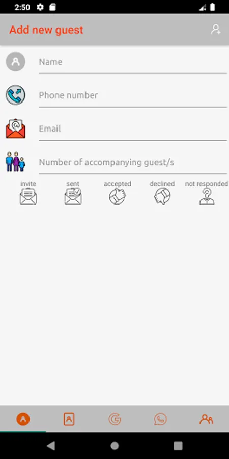 There is a sorting of guests by their status with the display of their number and also the total expected number of guests.