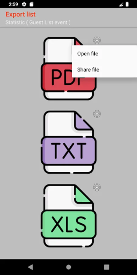 It is possible to save the guest list, including all guest data, in the form of a text file or a PDF file in the phone’s memory.