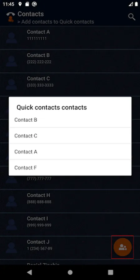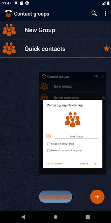 When the application is initially loaded, the "Quick Contacts" group is created by default (it appears when the application is open), you can rename it at will. In the list, you can add other groups as needed.
