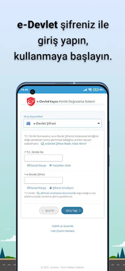 - 🔐 Create your account by logging in with your e-government user information. You can speed up your login to the application by defining a password for your account.