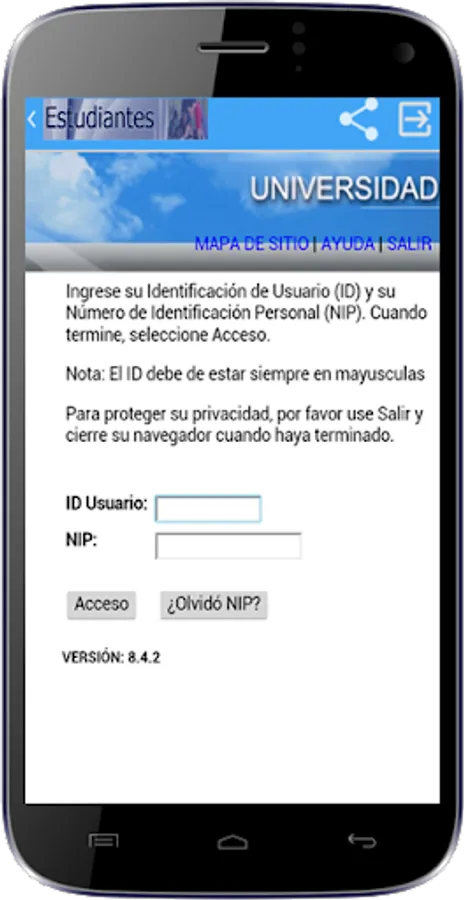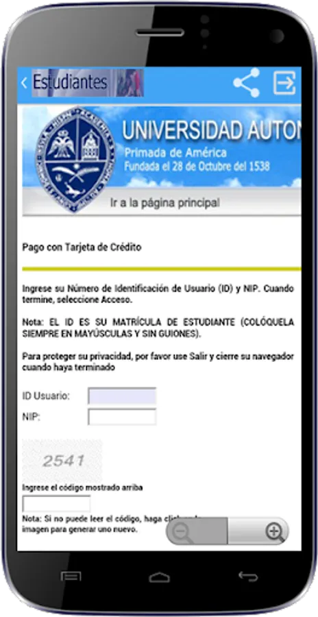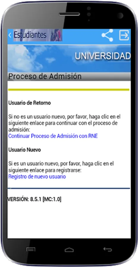 With this APP you can access your User, do Reentry, admission, Lost PIN, pay online, See academic calendar and see some tutorials with videos.