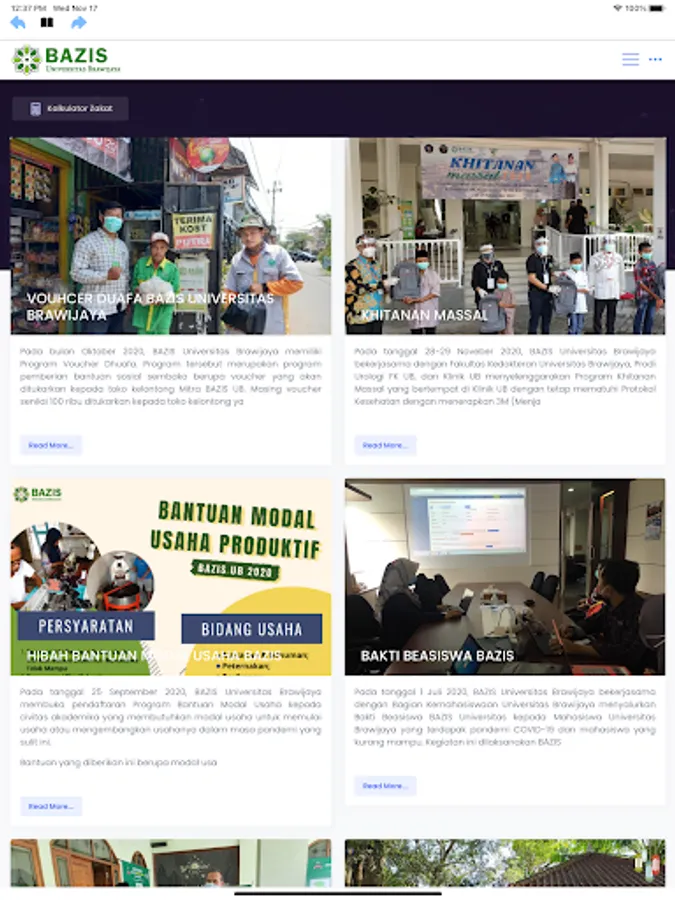 Badan Amil Zakat Infaq dan Sodaqoh Universitas Brawijaya (BAZIS UB) dibentuk melalui Peraturan Rektor Nomor 20 Tahun 2019 tentang Pengelelolaan Zakat Profesi atas Pendapatan Remunerasi yang memiliki tugas dan fungsi menghimpun dan menyalurkan zakat, Infak, dan sodaqoh (ZIS) di Universitas Brawijaya. Dalam perkebangannya, Rektor Universitas Brawijaya Malang menerbitkan Surat Tugas Nomor: 9415/UN10/KP/2019 tanggal 20 September 2019 tentang Penguataan dan Penataan kembali Pengelolaan Zakat, Infaq dan Sodaqoh. Surat Tugas tersebut menentukan pengelola BAZIS UB.
