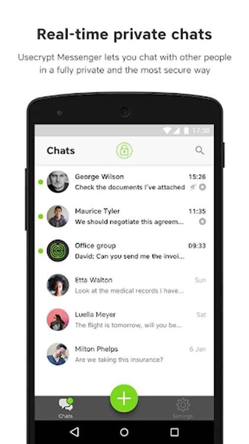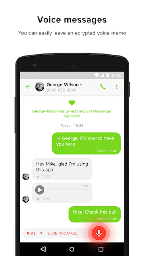Phonebook integration - the app will find contacts using UseCrypt Messenger and use them securely.