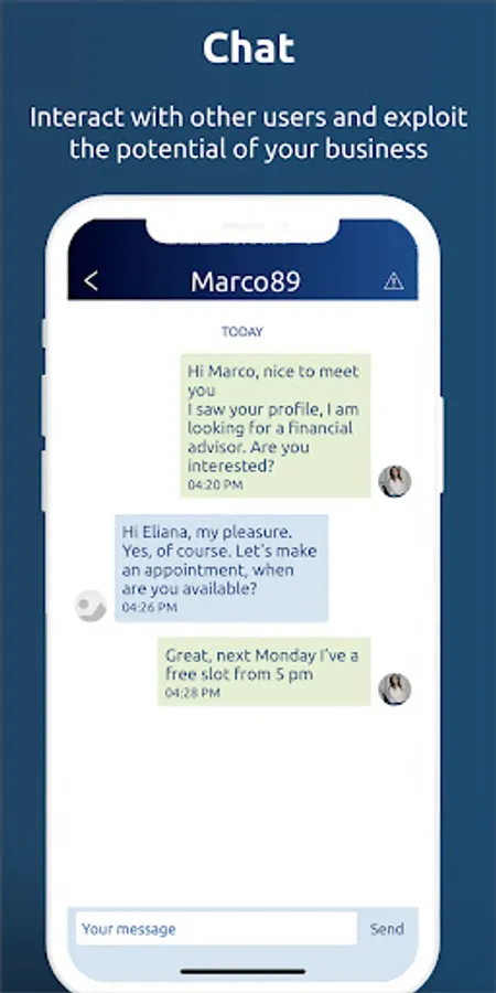It is possible to search for other users, including those closest to us and those recently connected to the app. Through the chat users can freely communicate with each other.