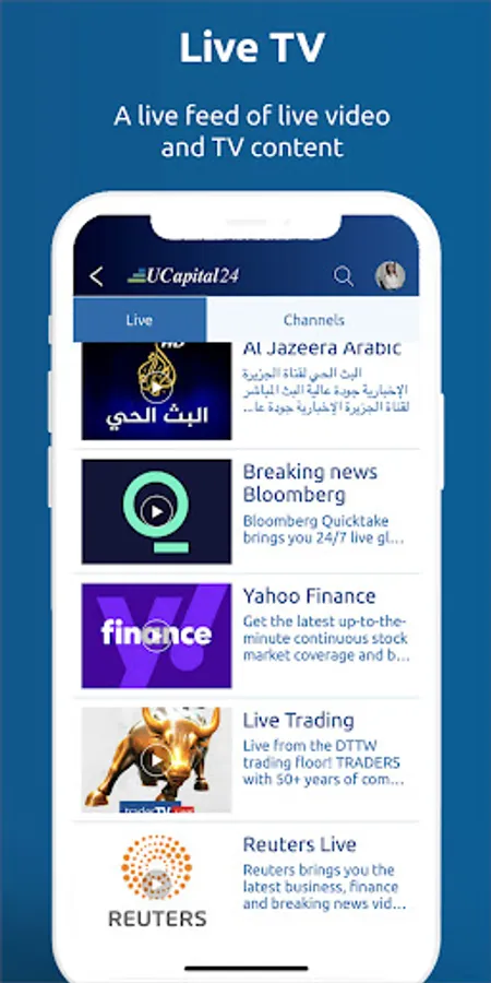 A section with the live stream of all the news from the major media providers in the world. A live feed also of live video and TV content