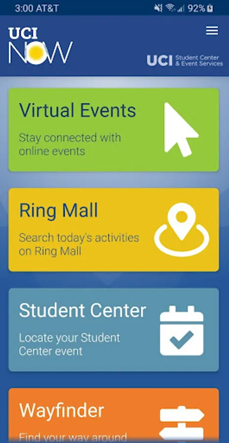 UCI Now app is a free app intended as a service to provide the UCI community and all campus guests with a convenient option for booking Courtyard Study Rooms, promoting your Ring Mall activities and navigating current events in and around the Student Center Buildings, the Terrace Patio, Ring Mall, and the Cross-Cultural Center.