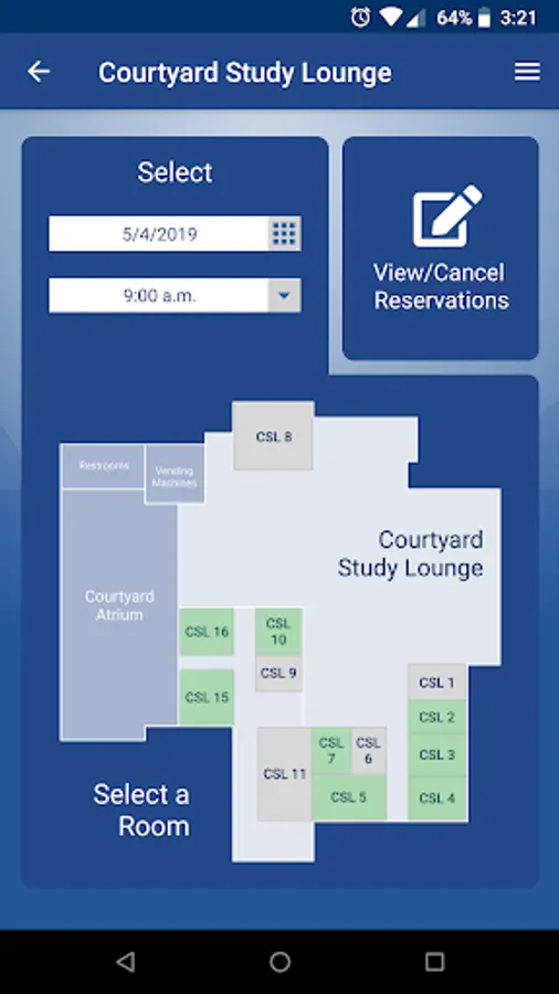 “The Center” function is a calendar of events sorted in a convenient list view. Users can view and search within two weeks of scheduled events booked through SCES. By selecting a date, the app searches all currently scheduled events and returns a list with the most current information available. The list of events includes an event title, room, and the start and end times.