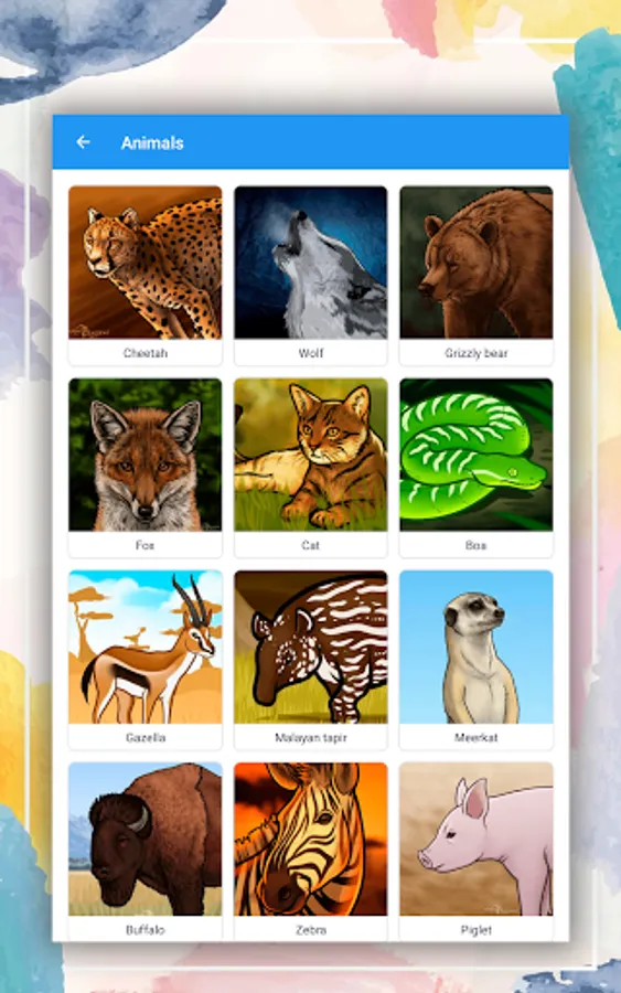★ A huge number of illustrations for training. Gun, gray wolf, ice cream, big snake, fantastic sword, cute, kawaii drawings. This is just a small list of what's in the app.
