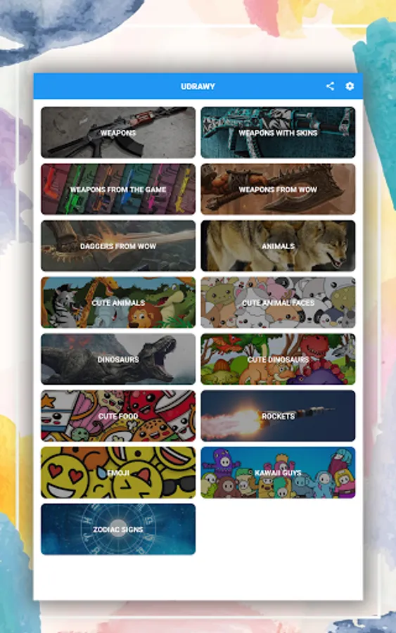 ★ A wide range of categories. Dinosaurs, food, animals, cute and kawaii drawings, weapons, fantastic things and much more.