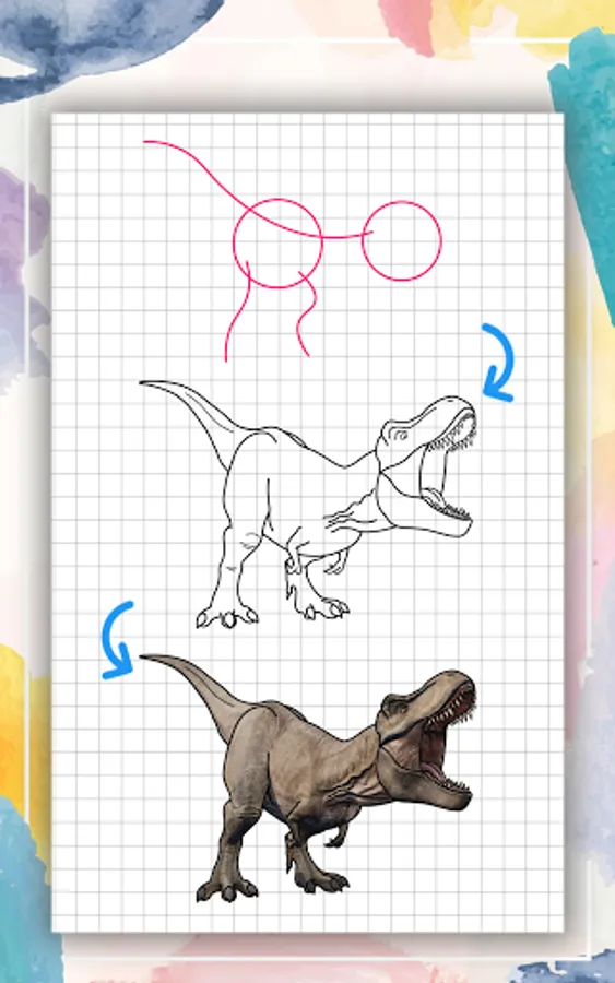 To practice, take a pencil with a piece of paper. Open the app, select one of the appropriate categories. Animals, dinosaurs, cute, kawaii drawings, weapons, food, fantastic things, or any other category. Choose any drawing lesson, follow the instructions and you will be able to draw a wonderful illustration. Follow step-by-step drawing lessons every day and you will become a great artist.