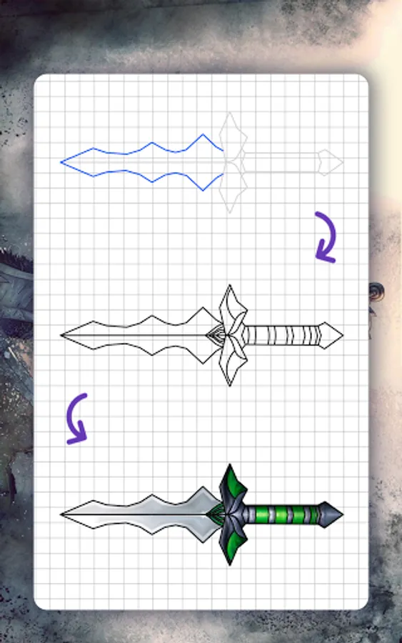 Step-by-step drawing of your favorite weapons. Do you want to surprise your friends or just learn how to draw? Then this application is specially for you. Lessons of varying difficulty will help you work out the key aspects of drawing. You will easily imagine what and how you will draw. Get new skills and develop. Drawing is fun!