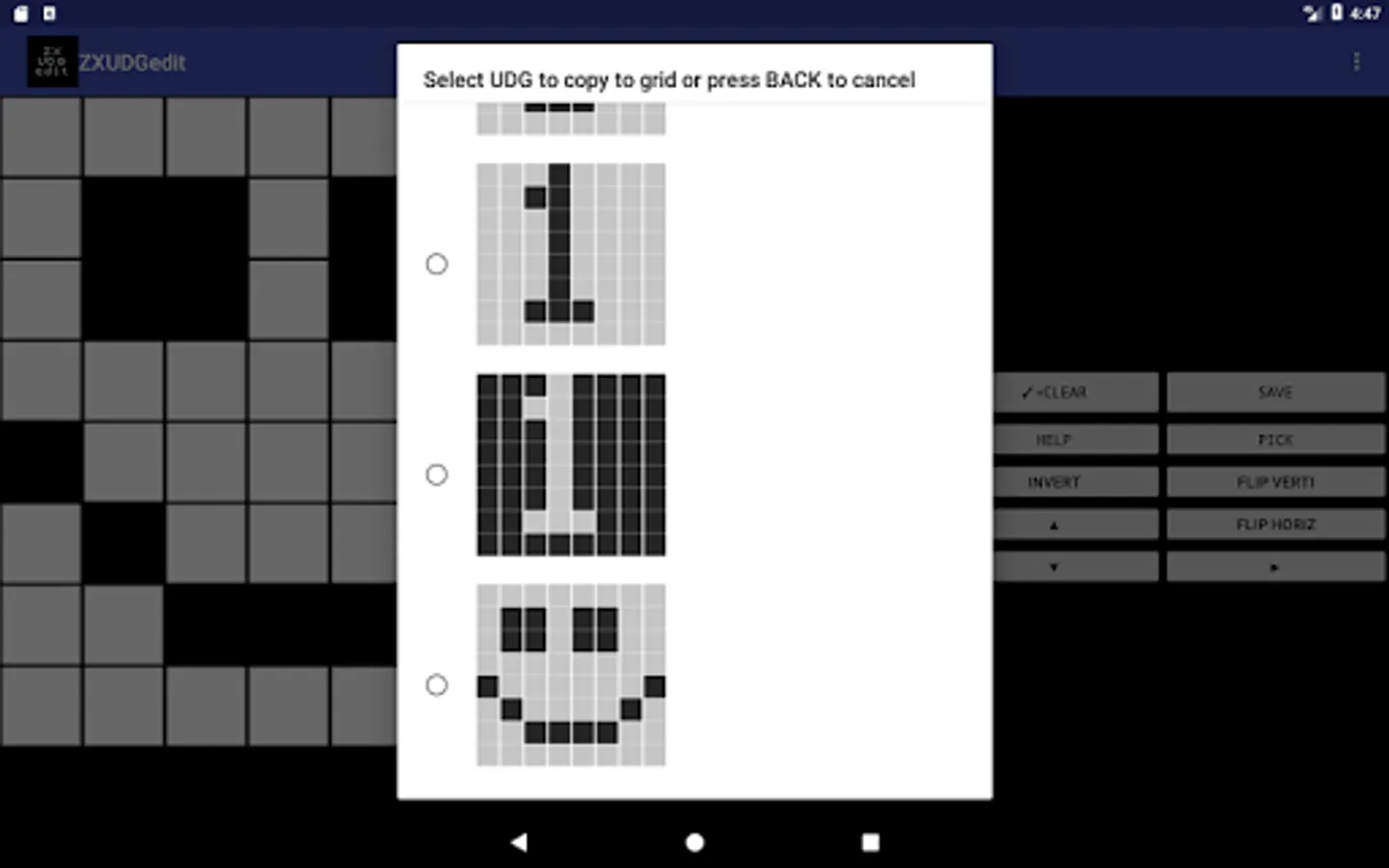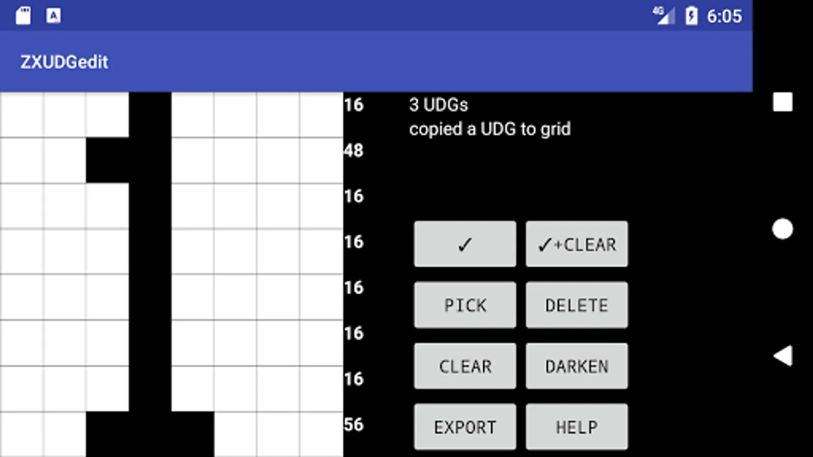 - Maybe a "lite" version for people who don't like installing apps with the Files Write permission, maybe just with the decimals and a better way to display all of the UDGs and their decimal values. Could support email/Bluetooth as an alternative to file creation on device.
