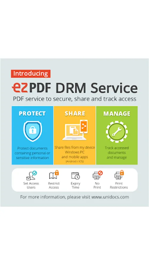 To use Unidocs' ezPDF DRM Service, you need to subscribe to the service and please use the link below.