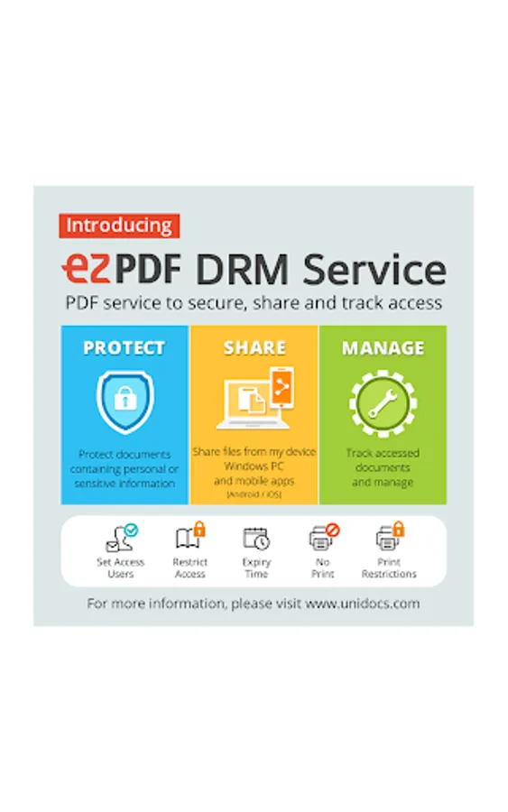 ezPDF DRM Reader is a dedicated PDF viewer for viewing PDF documents with security features through ezPDF DRM Service on Android devices.