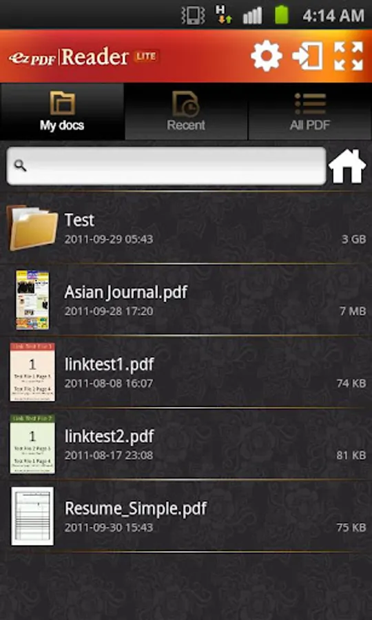"ezPDF Reader Lite" is the slim down version of "ezPDF Reader" for casual PDF reading. (Supports OS 2.1 and later)