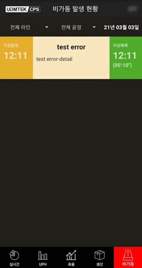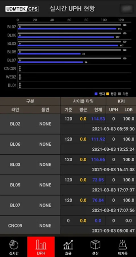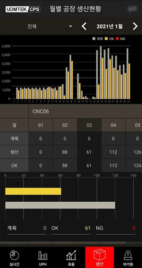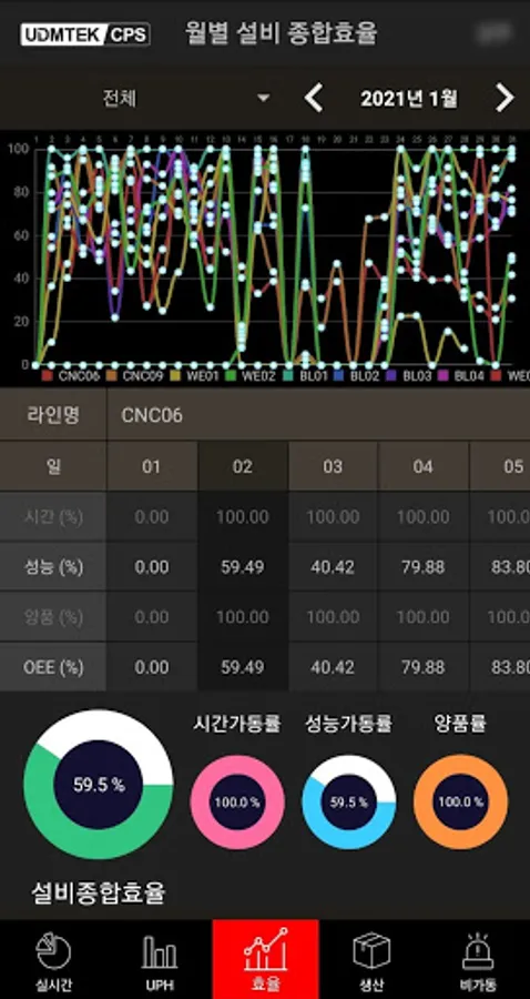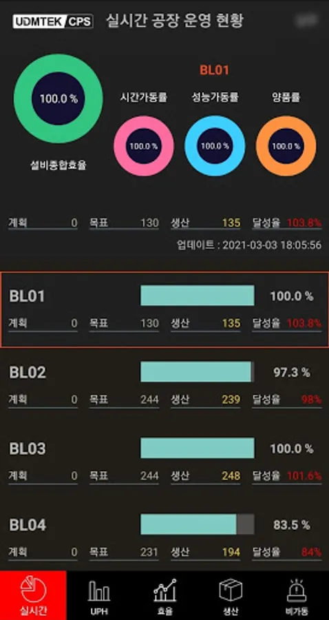It is a mobile application constituting the UDMTEK Smart Factory CPS platform, providing real-time production/operation status, UPH, production efficiency, non-operational information, etc.
