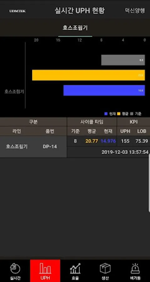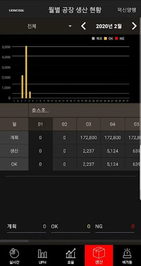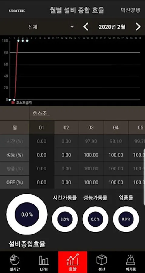 Real-time factory production status, real-time factory operation status, real-time UPH status, monthly facility overall efficiency, monthly factory production status, and non-operation status data are visualized.