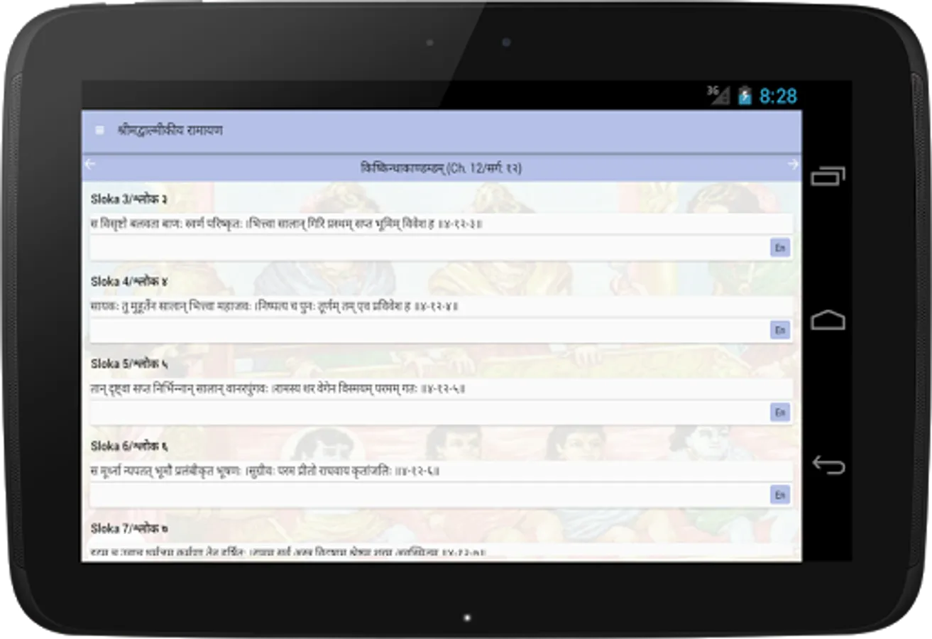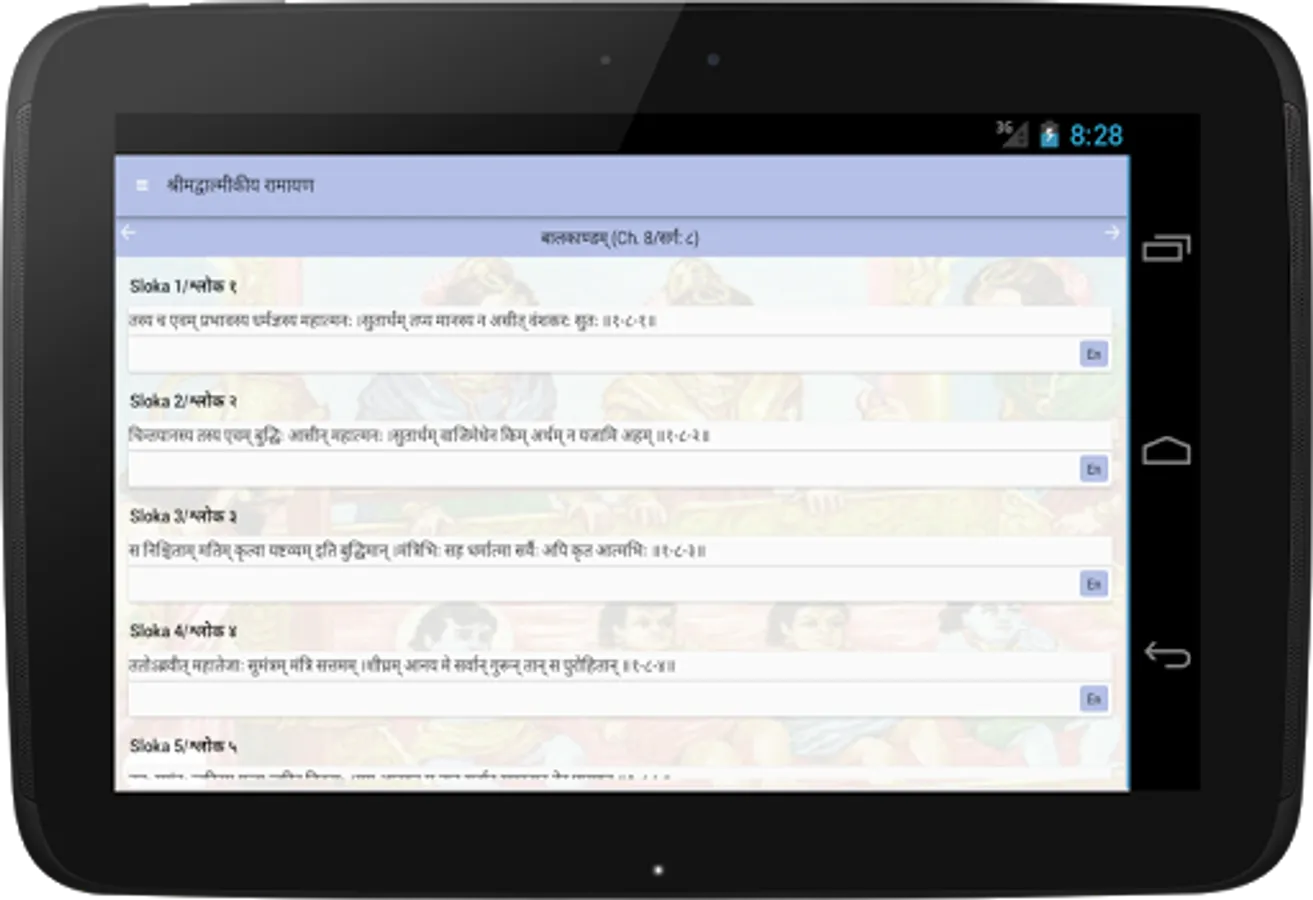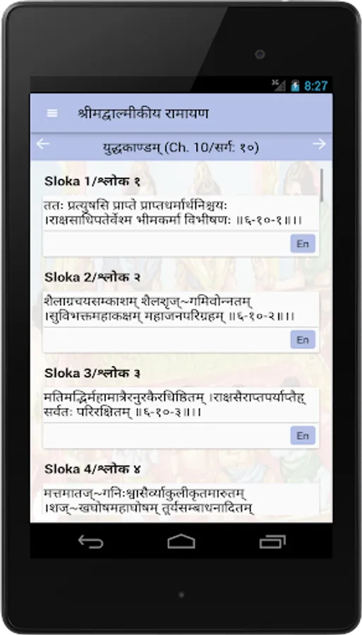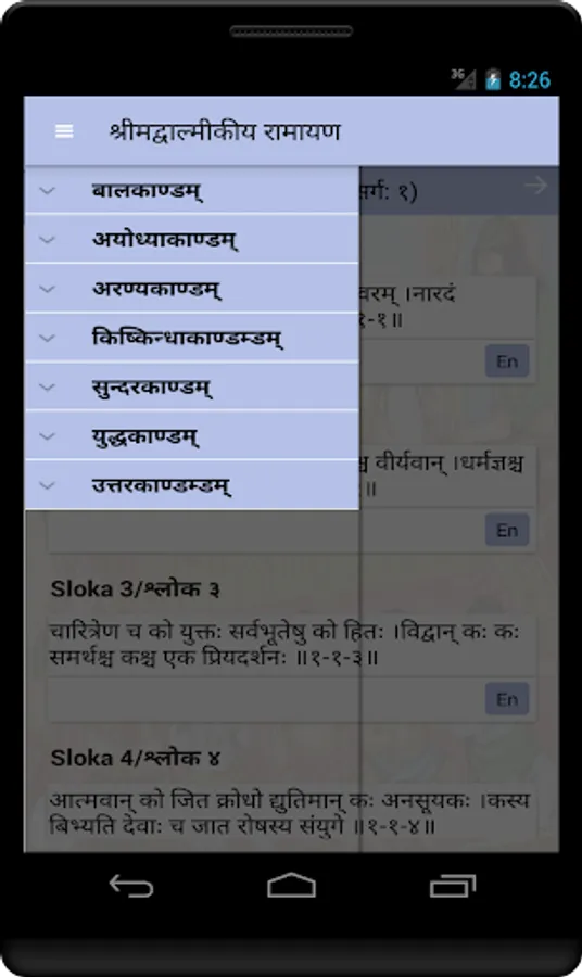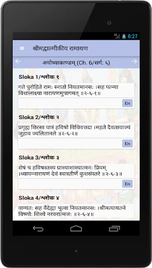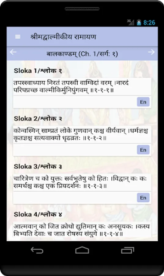 This simple app lists out all of the above chapters with the sloka's in Hindi/Sanskrit.