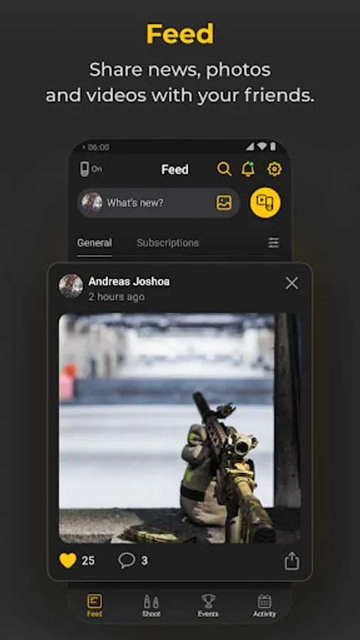 Upload your content to Feed or watch content from other shooters in a space that was created exclusively for shooters.