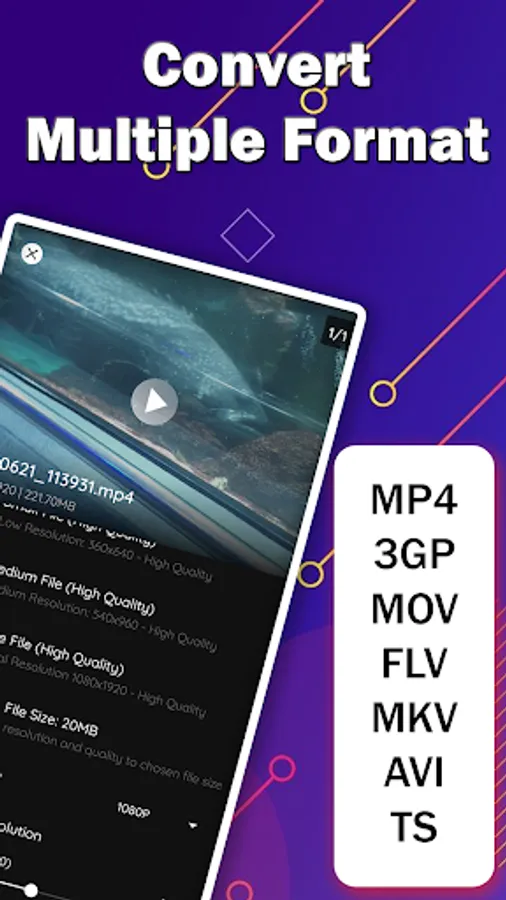 Video Compressor - Video Resizer can compress video and reduce size smaller without losing quality and convert video to many formats like: MP4, 3GP, AVI, FLV, TS, MOV, WMV, MKV, M4V… After compress video you can upload them to Facebook, Instagram without losing quality… you even can send large video via Whatsapp