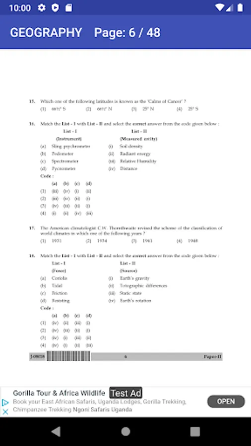 Geography Previous Year Papers