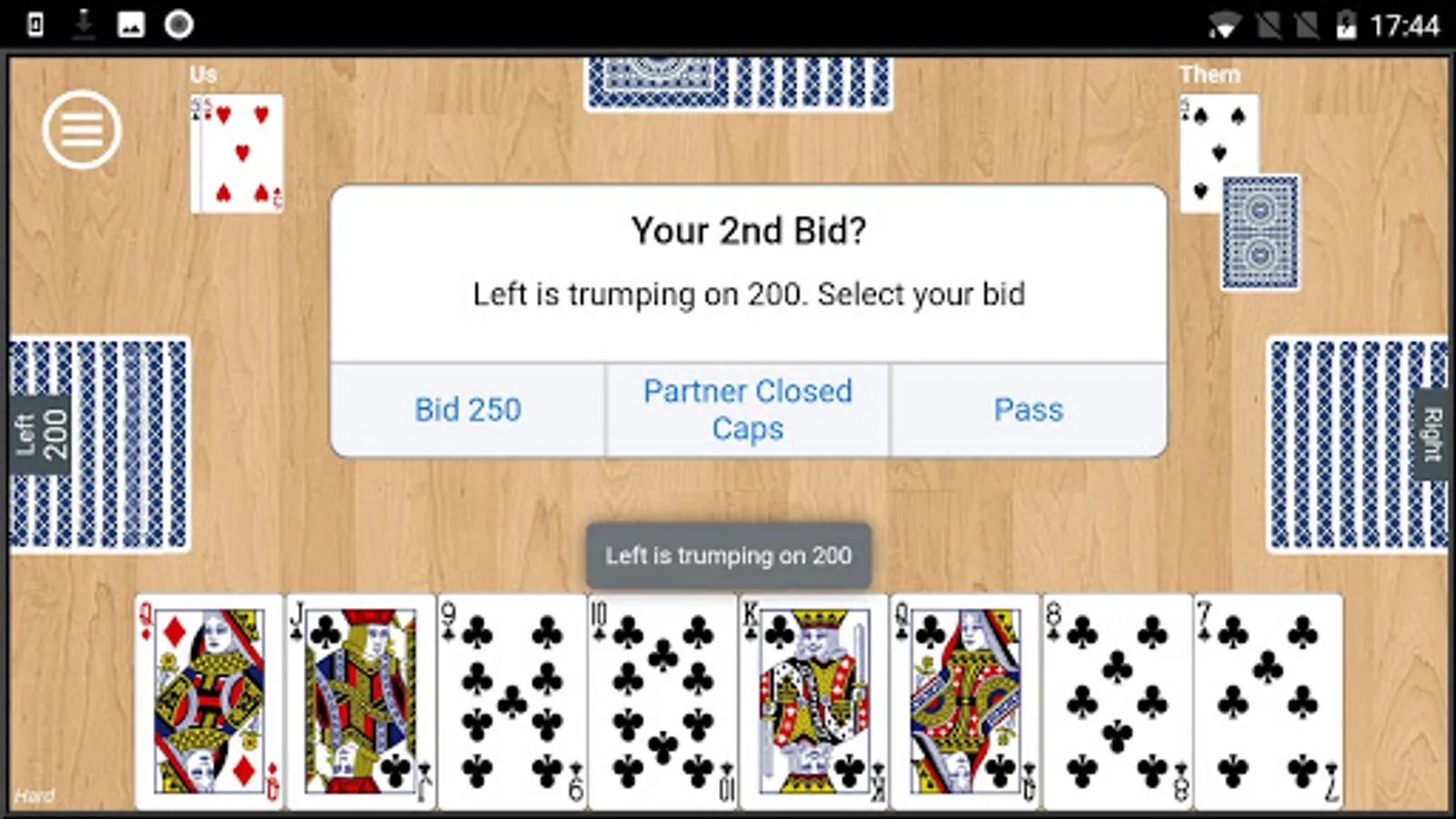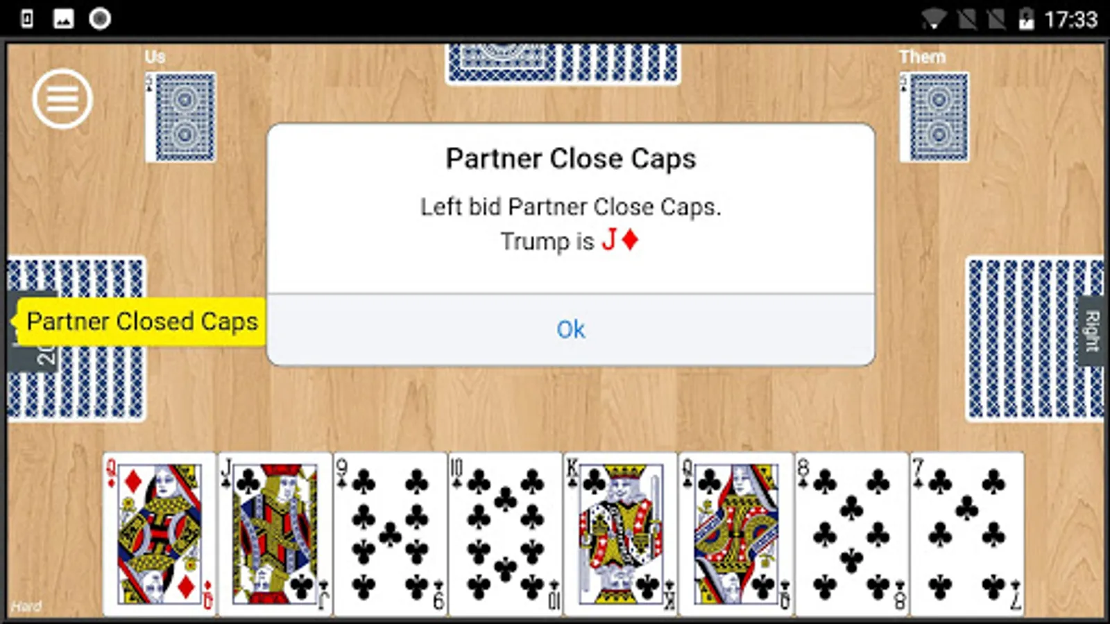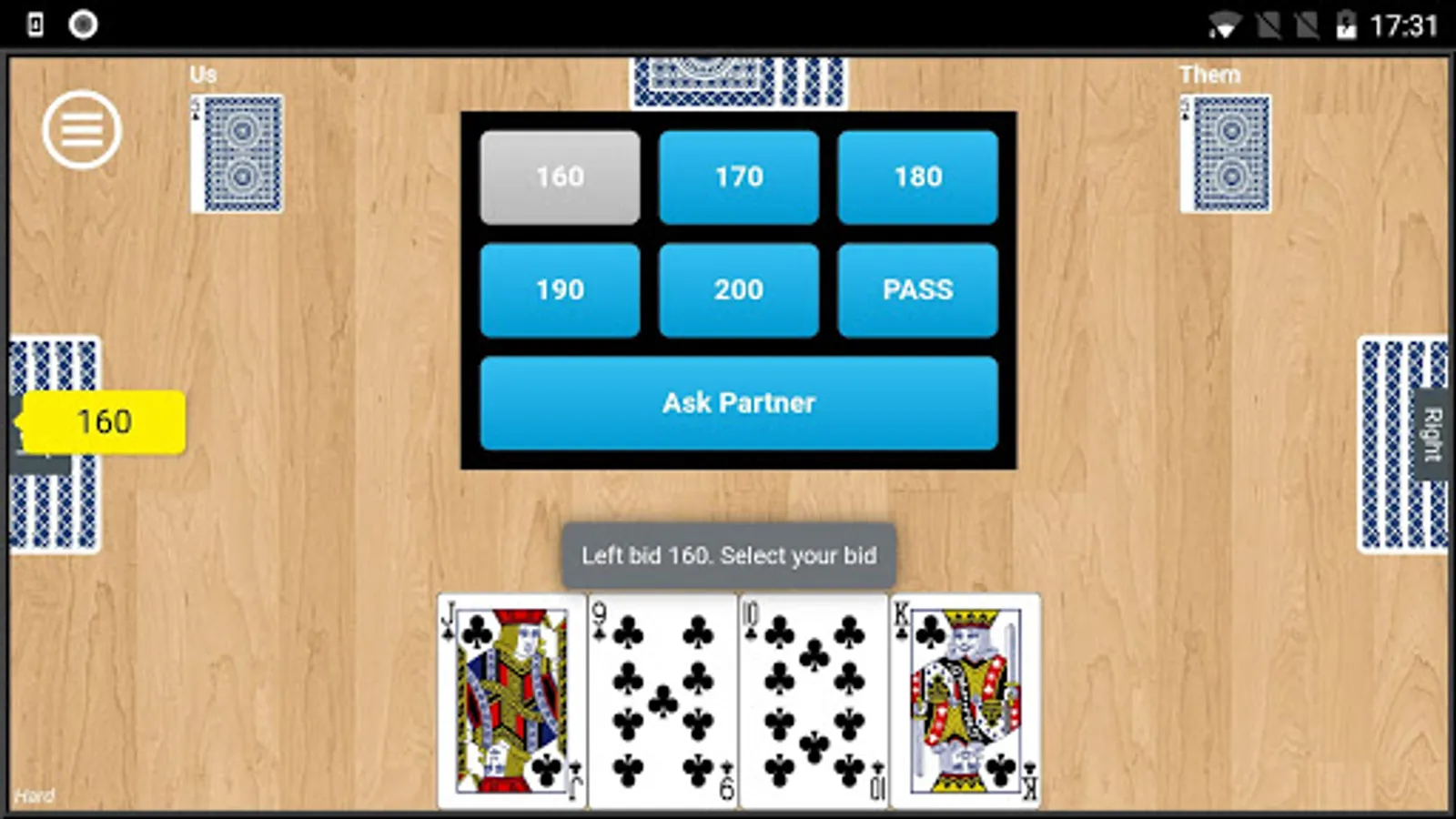 304 (Pronounced 'three nought four') is a card game popular in Sri Lanka and India. It is a four-player partnership point-trick game with bidding. 32 cards from a standard 52-card pack are used for play. There are eight cards in each of the suits: hearts, diamonds, clubs and spades. The cards in every suit rank from high to low: J-9-A-10-K-Q-8-7. The aim of the game is to win tricks containing valuable cards. The values of the cards are: