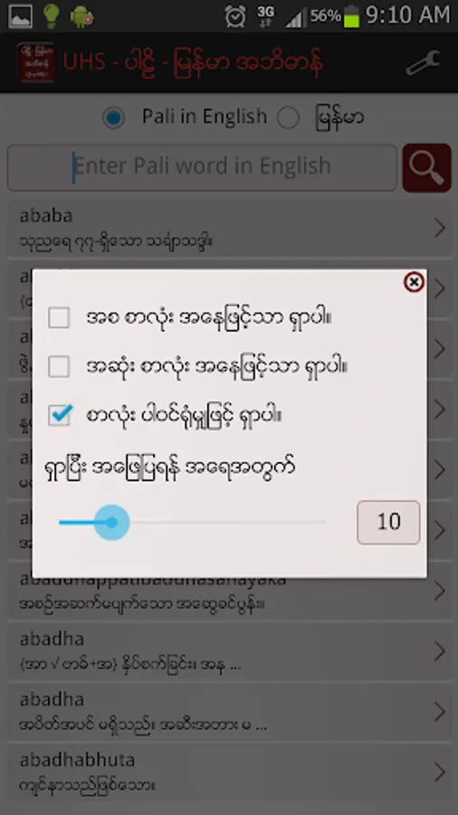 - မြန်မာ အဓိပ္ပါယ်များကို Unicode Font ဖြင့် ရိုက်၍သော်လည်းကောင်း ရှာဖွေနိုင်ပါသည်။
