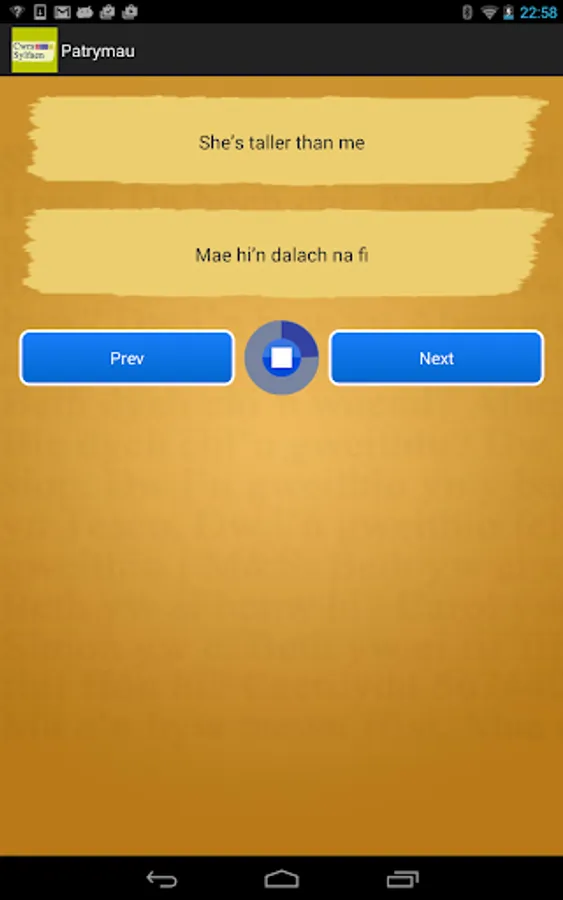 It is the second level of the course from CBAC's Welsh books. This App, like the Cwrs Sylfaen book, looks to consolidate your Welsh into the ability to converse in daily life.