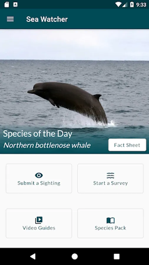 Welcome to the Sea Watcher app! Here you can log your sightings of whales, dolphins, seals and other megafauna (basking sharks, ocean sunfish and sea turtles) anywhere in the UK and European waters. Whether walking along the coast path, watching from a clifftop or spotting from a boat, the Sea Watcher app will help you identify what you saw and record all the information that will be useful to help us understand more about all these marine species in the UK and European waters!