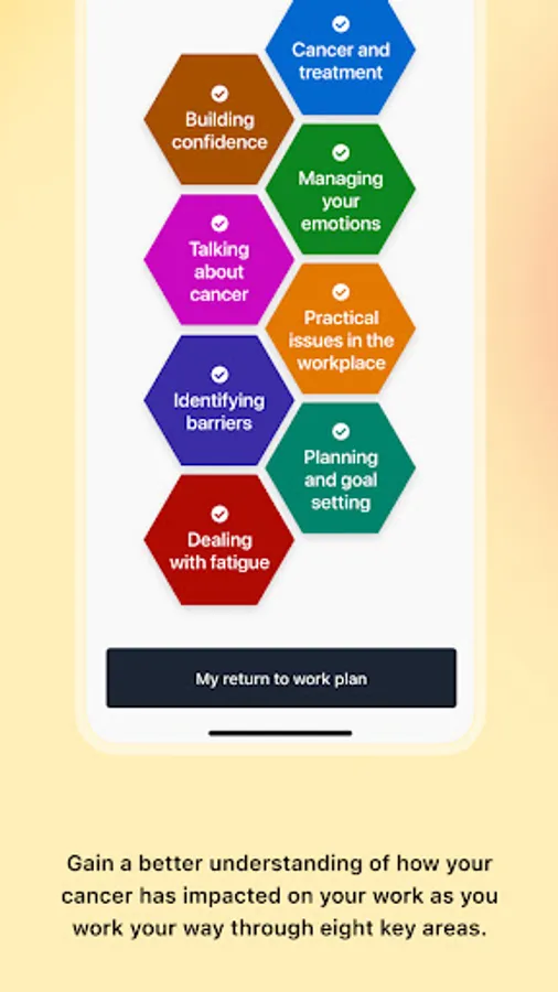 The WorkPlan app is based on the experiences of hundreds of people who received a diagnosis of cancer and their experiences of how this diagnosis impacted on work. The app has been designed to help you better understand how your cancer has impacted on your work and focuses on eight key areas including fatigue, talking about cancer, emotions and practical issues in the workplace.