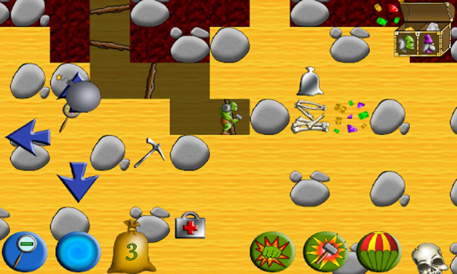 • Use dynamite, digging machines, gem locators, potions, parachutes, speed boosters and much more!
