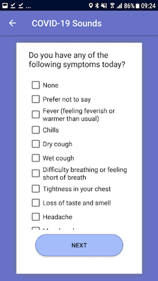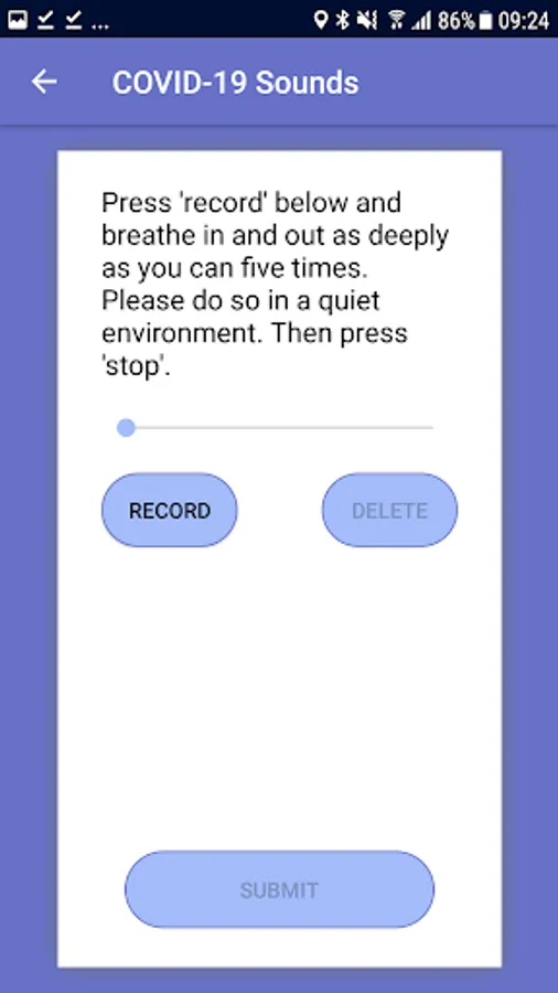 In order to enable this research we are launching a large scale, crowdsourced data collection through a mobile app. The app will collect some basic demographics and medical history data, as well as some voice samples (while you read text on the screen) through a questionnaire and a few seconds of breathing and coughing through the phone microphone. We will additionally collect one location sample. The app will also ask if you have tested positive for the virus. The app won't be tracking you and only collect this data when you actively interact with it.