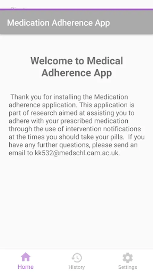 This is a Medication adherence application. This application is part of research aimed at assisting you to adhere with your prescribed medication through the use of intervention notifications at the times you should take your pills. Please note that this app can only be installed and used by private invitations only.