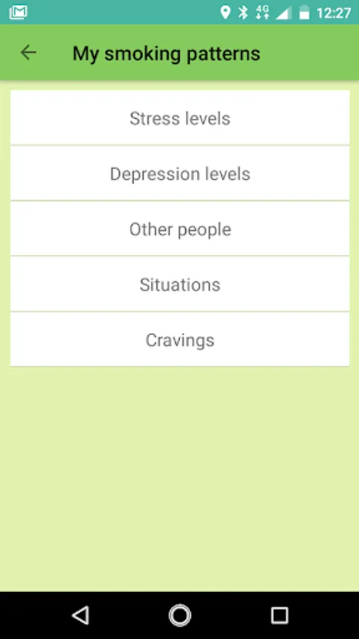 Quit Sense has other features including a ‘library’ of support messages, a ‘my profile’ section where users can view their smoking patterns (e.g., mood, strength of cravings, situation).