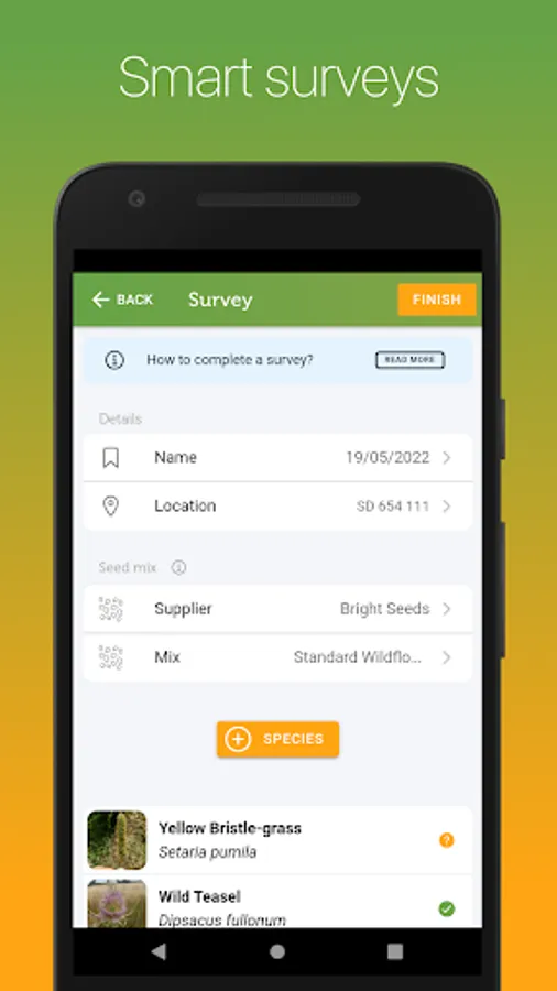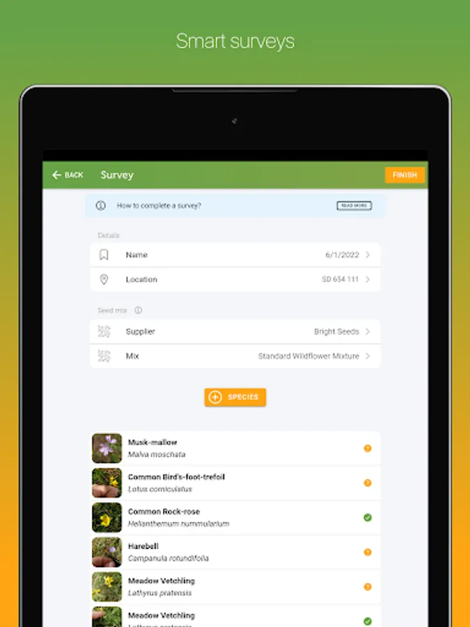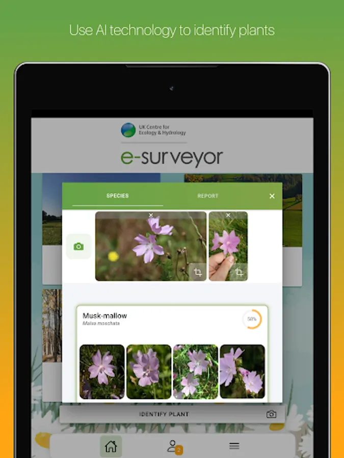 The E-surveyor app supports farmers to undertake assessments of agri-environment schemes. The app combines image recognition of plants and a rich data set of seed mixes and plant attributes to provide reports on habitat quality.
