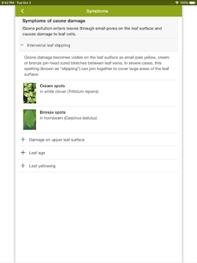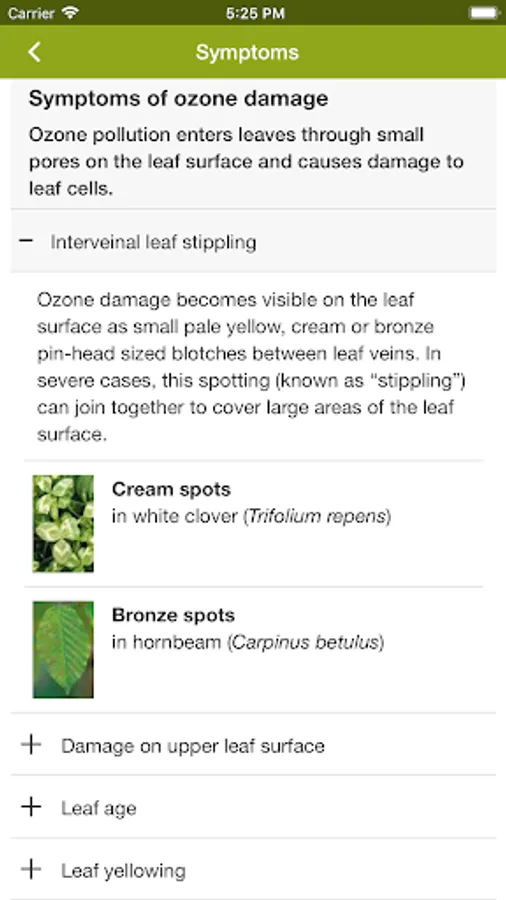 - learn to recognise symptoms of ozone injury,