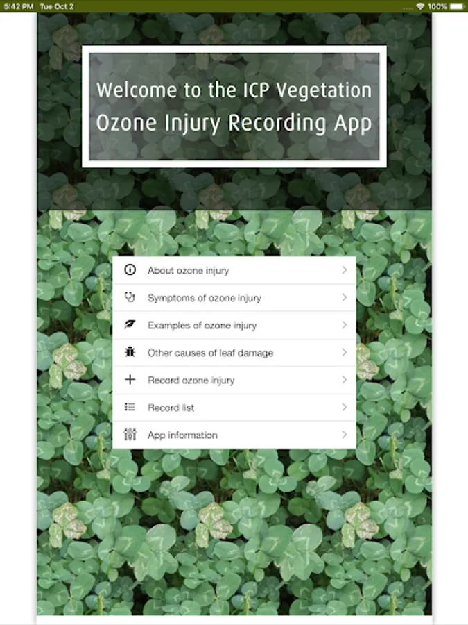 - submit records of ozone injury to the database at the Centre for Ecology & Hydrology,
